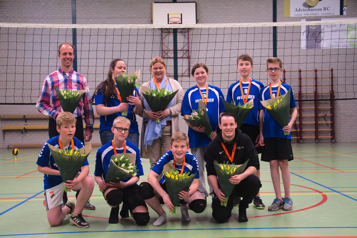 In de laatste wedstrijd stond er voor de Liendense volleyballers veel op het spel. Er moest in sporthal “de Hokhorst” in Renswoude met minimaal 3-1 worden gewonnen omdat anders concurrent Renswouw de Liendense spelers op puntengemiddelde nog van de eerste plaats zou kunnen verstoten. Het team van trainer Corina van de Burg was vooraf begrijpelijkerwijs nogal gespannen. Zij deden echter wat er gedaan moest worden en via de setstanden 22-25, 24-26, 25-21 en 13-25 bleef vv Lienden met 1-3 fier overeind. Na afloop vertrokken de nieuwe kampioenen direct huiswaarts waar de supporters al stonden te wachten. Op de parkeerplaats bij de “Lindekampsportzaal” klonk luid Queen’s “We are the champions” uit een haastig opgestelde speaker en ook een lichte champagnedouche maakte deel uit van de spontane ontvangst. Binnen werden medailles aan de winnaars uitgedeeld en vanzelfsprekend ontbrak een feestelijke bloemetje niet. Een mooie prestatie die in het afgelopen seizoen werd neergezet door de spelers Geertjan, Tim, Thom, Ruben, Rutger, Susan en Anna en trainer Corina met haar assistenten Jasper, Martijn en in de afgelopen week Geurie. De eerste drie plaatsen in de eindstand worden ingenomen door vv Lienden JC2 met 44 punten, tweede is Renswouw 1 38 punten en derde staat Bruvoc/Spiker met 25 punten.